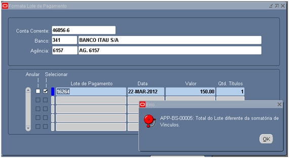 Alguém já viu esse erro "APP-BS-0005: Total do Lote diferente da somatória de Vínculos" no pagamento de tributo.